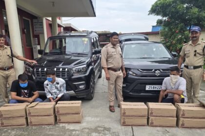 देहरादून : पंचायत चुनावों में शराब बांटने के मंसूबो को दून पुलिस ने नाकाम किया। लग्जरी कार से अवैध शराब की तस्करी कर रहे अभियुक्त सहित 02 शराब तस्करों को दून पुलिस ने गिरफ्तार किया। अभियुक्तों के कब्ज...