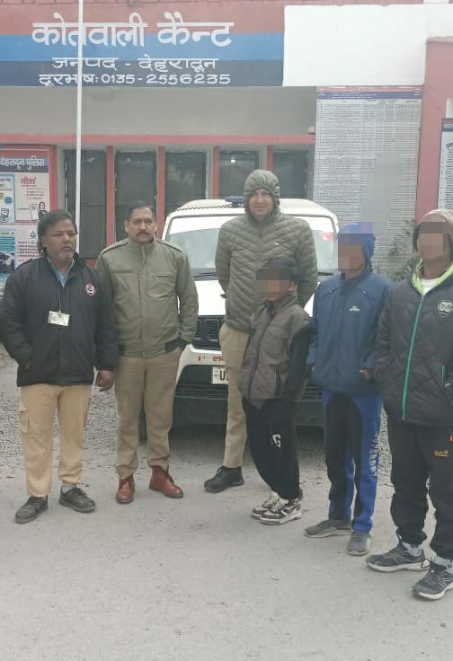 देहरादून : महिला एवं बाल सुरक्षा के प्रति दून पुलिस गंभीर है। दर असल कैंट क्षेत्र से लापता 03 नाबालिक बच्चों को दून पुलिस ने बागपत, उ०प्र० से किया सकुशल बरामद किया जो घर वालो को बिना बताये घूमने हरिद्वार गये थे। हरिद्वार से गलत बस में बैठने के कारण पहुँच बागपत पहुँच गये। पुलिस द्वारा त्वरित कार्यवाही कर तीनो नाबालिकों कोसकुशल बरामद किया।