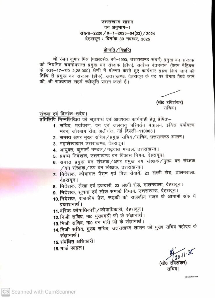 शासन ने अब रंजन कुमार मिश्र को सौंपी वन विभाग की जिम्मेदारी