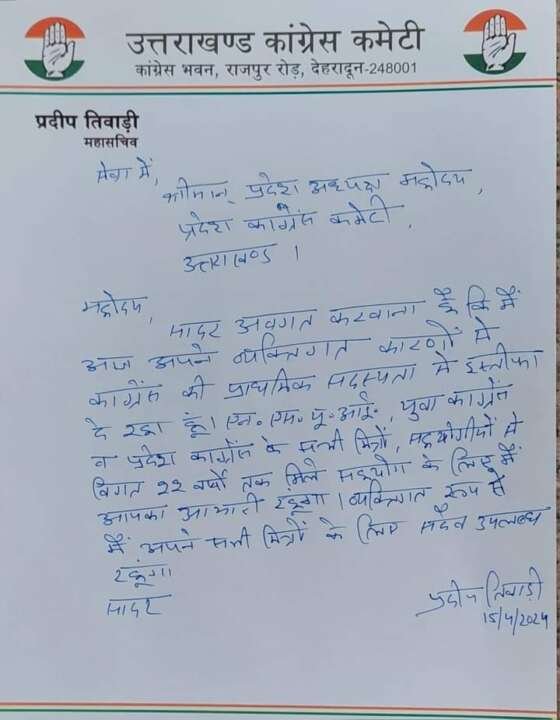 बता दें कि प्रदीप तिवारी ने कांग्रेस से इस्तीफा दे दिया है। जो की एक बड़ी क्षति गणेश गोदियाल के लिए हो सकती है।।